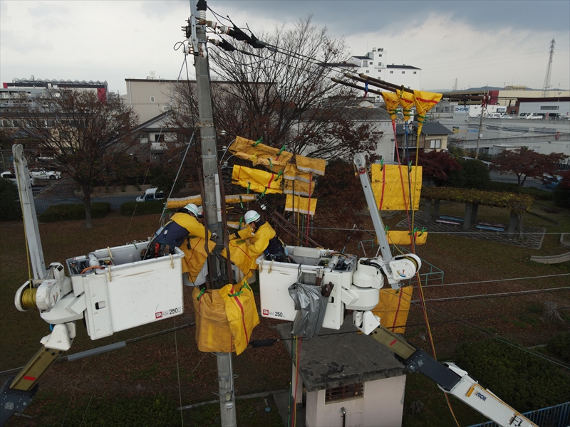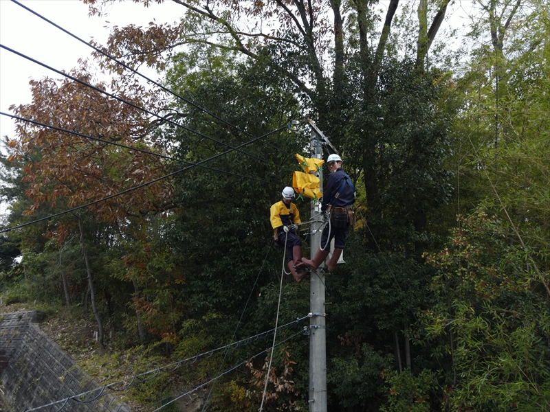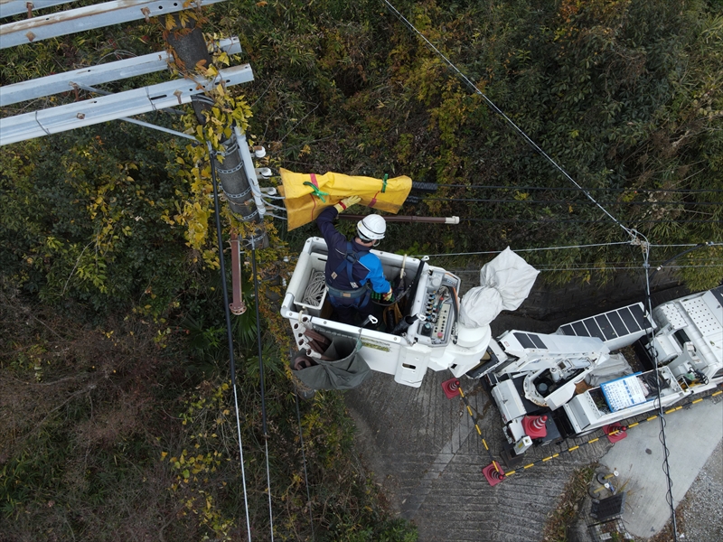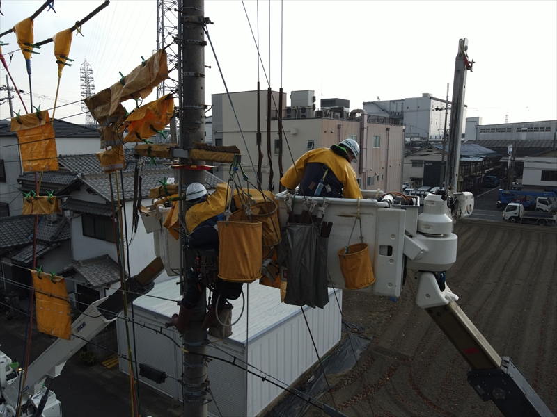 経年劣化した高圧電線の張替えを行います。